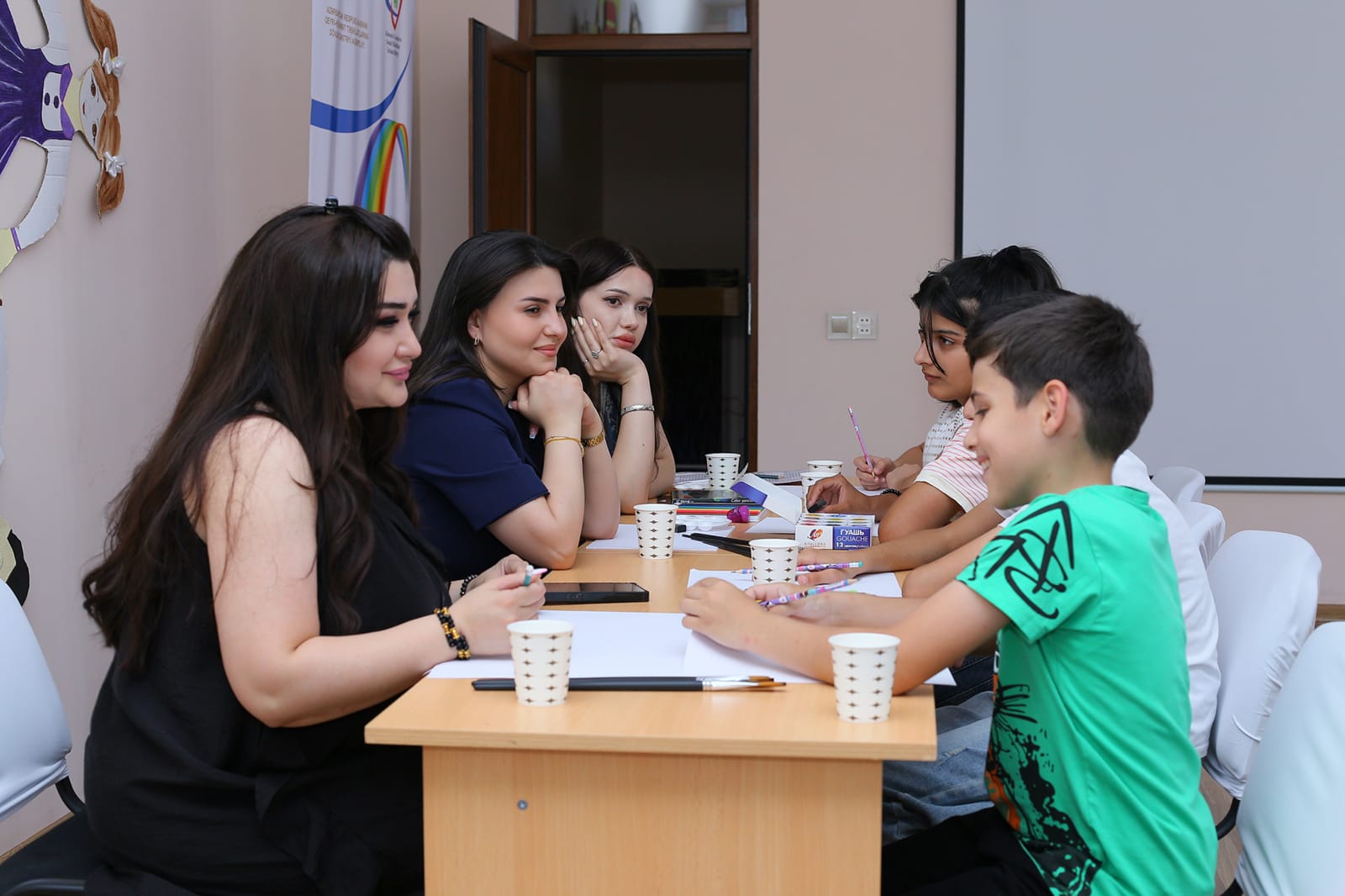 Layihənin ilk təlim günü uşaqlara təsviri sənət haqqında ümumi məlumat verildi. Təlimdə uşaqlara təsviri sənətin mahiyyəti, növləri və insan həyatındakı əhəmiyyəti barədə geniş məlumat təqdim olundu. Onlara rəsm, qrafika, heykəltəraşlıq, dekorativ-tətbiqi sənət və digər istiqamətlər haqqında əyani və interaktiv formada izahlar verildi. Təlimçi rəsm müəllimi qeyd etdi ki, təsviri sənət sadəcə estetik zövq formalaşdırmaqla kifayətlənmir, həm də uşaqların daxili aləminin üzə çıxarılması və emosional vəziyyətlərinin sabitləşdirilməsi baxımından böyük əhəmiyyət daşıyır. Qeyd edək ki, layihə çərçivəsində təşkil edilən rəsm kursları yalnız bacarıqların inkişafı ilə məhdudlaşmır. Həmçinin art-terapiya metoduna əsaslanan bu proses uşaqların psixoloji gərginliyini azaltmaq, stresslə mübarizə aparmaq və özgüvən hissini gücləndirmək məqsədi daşıyır. Layihəyə cəlb olunmuş peşəkar psixoloq uşaqlarla fərdi və qrup şəklində iş apararaq onların cəmiyyətə inteqrasiyasına dəstək göstərir. Bu mərhələ, layihənin doqquz mövzusundan ilkini təşkil edir və növbəti mərhələlərdə uşaqlara psixoloji dəstək məqsədli və onların bilik və bacarıqlarının daha da genişləndirilməsi istiqamətində praktiki məşğələlər keçiriləcəkdir.