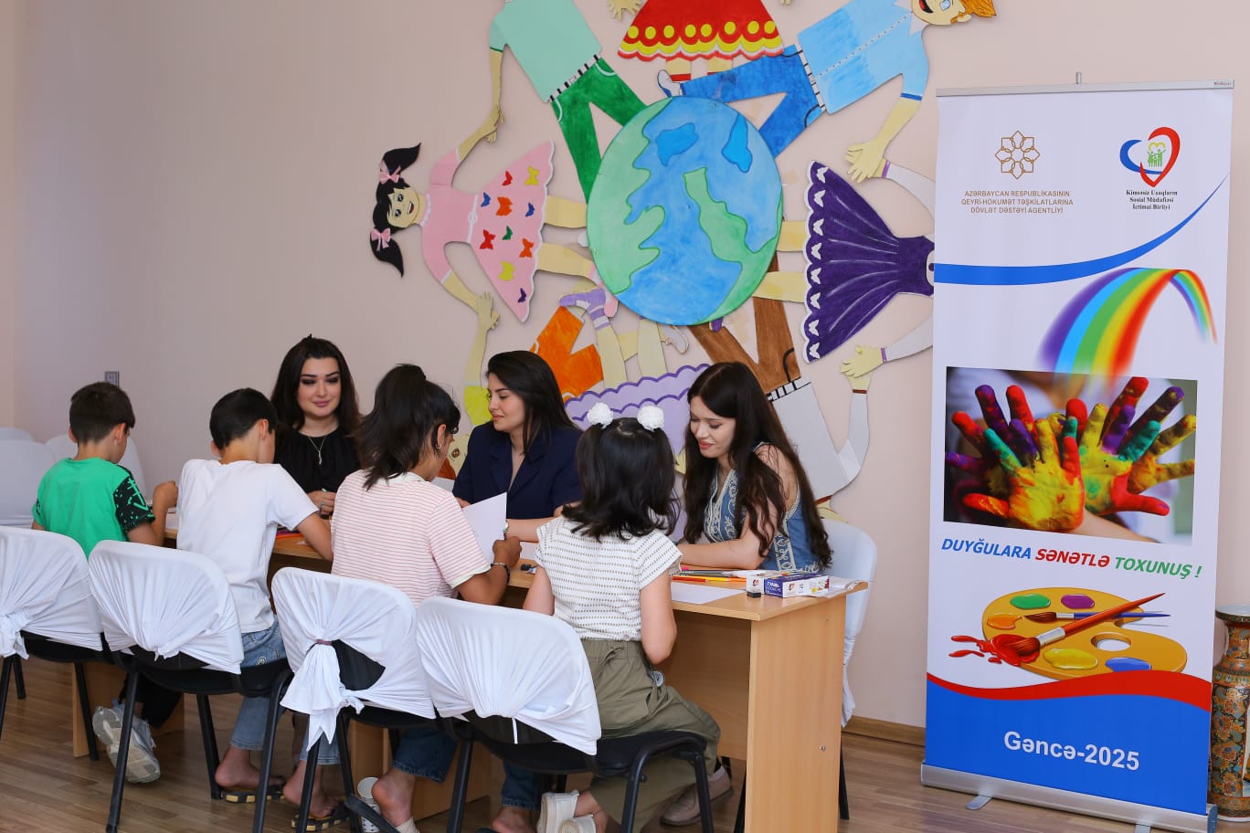Azərbaycan Respublikasının Qeyri-Hökumət Təşkilatlarına Dövlət Dəstəyi Agentliyinin maliyyə dəstəyi ilə "Kimsəsiz Uşaqların Sosial Müdafiəsi" İctimai Birliyi tərəfindən icrasına başlanılmış "Sənət və duyğu harmoniyasının təbliği" adlı layihə çərçivəsində Gəncə şəhərində, Sosial Xidmətlər Agentliyinin 4 saylı Uşaq Evi Sosial Xidmət müəssisəsində valideyn himayəsindən məhrum olmuş uşaqlarla ilk art-terapiya məqsədli rəsm kursu baş tutdu. "Duyğulara sənətlə toxunuş" şüarı ilə həyata keçirilən bu sosial layihənin əsas benefisiarları 7-17 yaş arası, 8 nəfər uşaq və yeniyetmələr olacaq. Layihənin rəhbəri "Kimsəsiz Uşaqların Sosial Müdafiəsi" İctimai Birliyinin sədri Lamiyə İsazadədir. Layihənin psixoloqu "Serotonin" neyropsixoloji mərkəzin psixoloqu Alsu Süleymanova, layihənin rəsm müəllimi, Gəncə Dövlət Universitetinin müəllimi Nəzrin Ağayevadır.