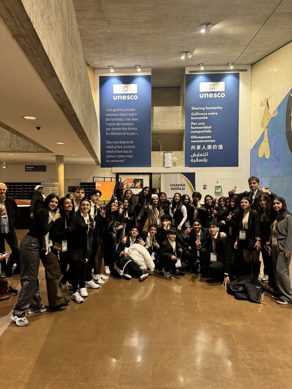 Mediaservis.az xəbər verir ki, Parisdə UNESCO-nun qərargahında 40-dan artıq ölkədən 500-dən çox iştirakçının qatıdığı tədbirdə Change the World layihəsinin Azərbaycan üzrə təmsilçisi olan Shane Academy-nin təşkilatçılığı ilə ölkəmizdən 30 nəfər gənc beynəlxalq əməkdaşlıq, təhsil, elm, mədəniyyət və kommunikasiya kimi mövzuları əhatə edən qlobal problemlərin müzakirəsində iştirak edib.