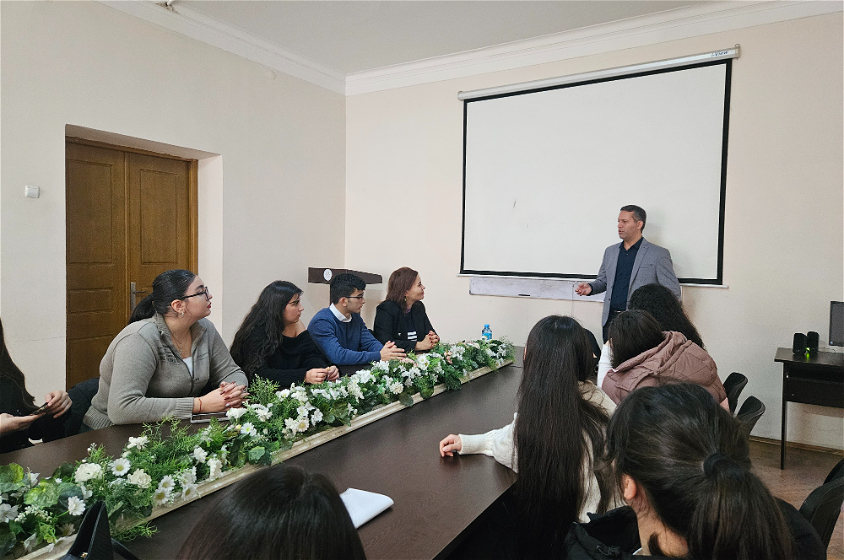 Azərbaycan Dillər Universitetində (ADU) Beynəlxalq jurnalistika şöbəsinin təşkilatçılığı və Azərbaycan ədəbiyyatı kafedrasının “Beynəlxalq jurnalistika” ixtisası üzrə müəllimi, filologiya üzrə fəlsəfə doktoru, dosent Aynurə Hüseynovanın təşəbbüsü ilə “Report” İnformasiya agentliyinin redaktoru, "MediaServis" - Media Xidmətləri təşkilatının rəhbəri Elgün Mənsimovun jurnalistika ixtisasında təhsil alan tələbələrlə görüşü keçirilib.