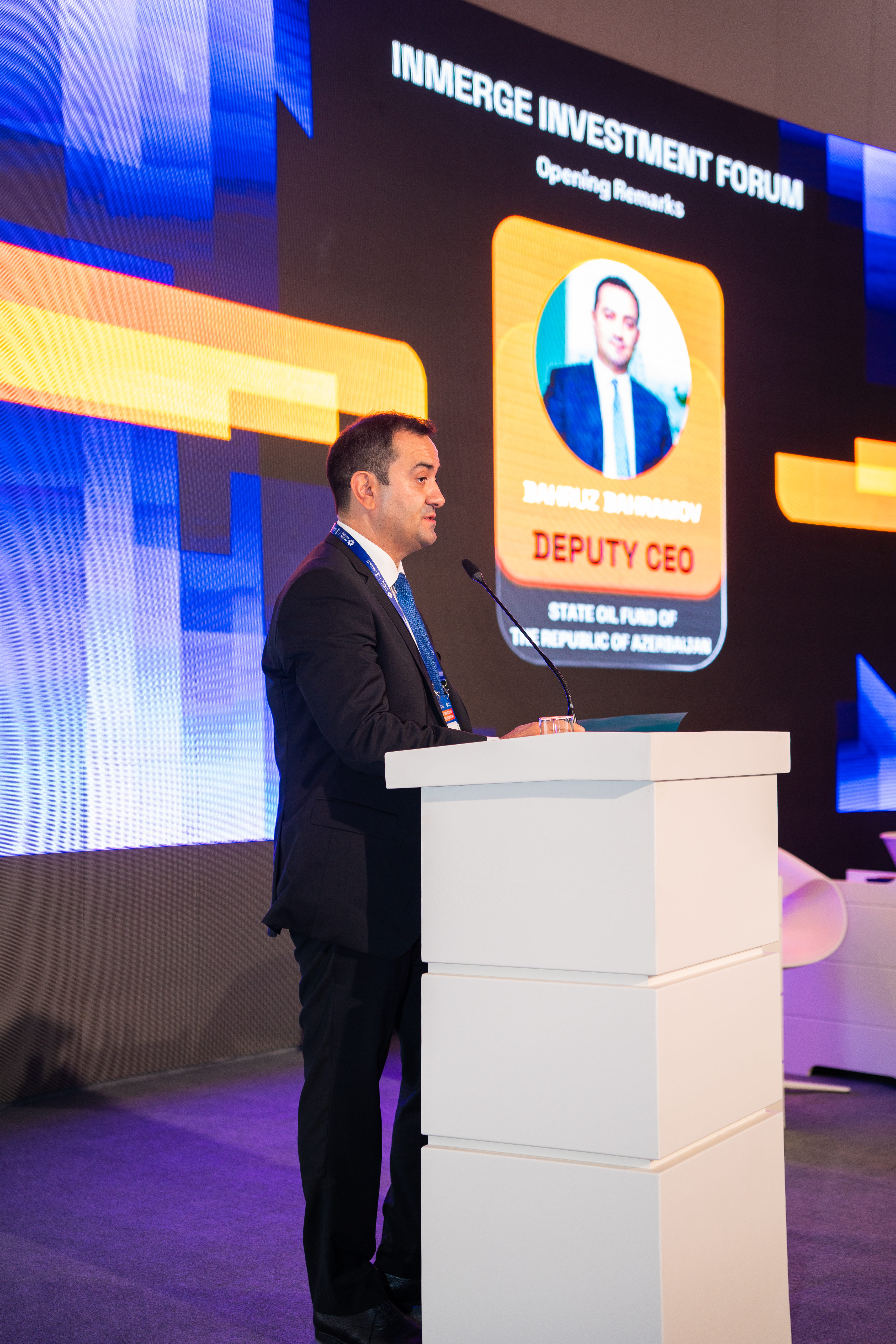 Forumun açılışında çıxış edən ARDNF-nin İcraçı direktorunun müavini Bəhruz Bəhramov tədbirin Azərbaycanın iqtisadi inkişafında mühüm bir dövrə təsadüf etdiyini vurğulayıb. O, bu inkişaf trayektoriyasını müəyyən edən üç əsas istiqaməti – enerji, nəqliyyat əlaqəliliyi və iqtisadi diversifikasiyanı diqqətə çatdıraraq bildirib ki, ARDNF bu istiqamətlərin hər birinə resurs gəlirlərini davamlı investisiyalara çevirərək töhfə verir. Bu töhfə ölkədə iqtisadi sabitliyin qorunması, davamlı iqtisadi artımın təşviqi və uzunmüddətli dəyər yaradılması baxımından xüsusi əhəmiyyət daşıyır.